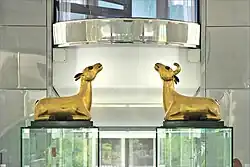 A l’origine, ce couple de cervidés était accompagné d’une roue de la Loi au dessus du portail d'entrée d'un monastère tibétain.