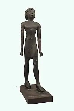 Statuette d'homme debout. Bois (traces de peinture). Modèle. Moyen Empire (environ 2033-1786 avant l'ère commune). Gizeh.