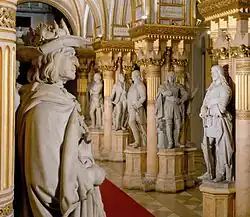 L'ordonnance intérieure du Musée d'Histoire Militaire de Vienne reflète la volonté de l'empereur François-Joseph de ne pas limiter le musée à exposer les armes anciennes, mais d'en faire aussi un grandiose mémorial pour l’armée impériale. On peut ainsi admirer dans la Feldherrenhalle les 56 statues en pied des « plus célèbres et des plus dignes princes guerriers et généraux de l'Autriche » (berühmtesten, immerwährenden Nacheiferung würdiger Kriegsfürsten und Feldherren Österreichs), comme cela est stipulé par le décret impérial du [3]. Les statues sont en marbre de Carrare et toutes de même hauteur, soit 1,86 m. Les noms et les dates des personnages ainsi figurés sont rappelés dans un cartouche surmontant l'effigie. Les noms des 32 artistes, l'année de l'exposition et les noms de leurs mécènes sont inscrits sur leurs socles. Les frais ont été pris en charge pour moitié par l'empereur François-Joseph lui-même, et pour moitié par des donateurs, qui étaient le plus souvent les héritiers des généraux représentés. La succession des généraux s'étend du margrave Léopold Ier de Babenberg à l’archiduc Charles de Habsbourg.