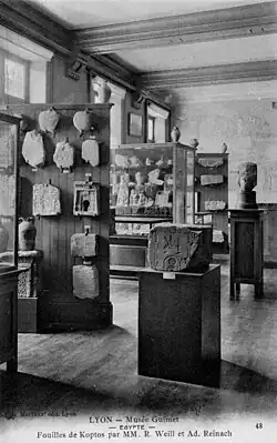 - ↑ Geneviève Galliano, « Un jour, j'achetai une momie... Émile Guimet et l'Égypte antique », exposition au musée des beaux-arts de Lyon, 30 mars au 2 juillet 2012