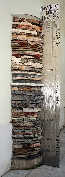 L'atrium du musée abrite deux expositions : la Carte géologique de la Croatie (Kamenospisna karta Hrvatske) et le Pôle géologique (Geološki stup). La Carte géologique de la Croatie est une carte mosaïque assemblée à partir de divers morceaux de roche trouvés en Croatie, formant la silhouette du pays[20].