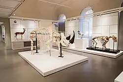 L'une des salles du musée Kosmos avec un squelette de rhinocéros blanc du sud au premier plan.Hippopotame (Hippopotamus amphibius) de Mantoue en 1783.