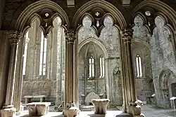 En plus des vestiges de l'église elle-même, qui sont encore debout, les ruines contiennent également une grande collection de blasons, de pierres tombales, de baldaquins, de chapiteaux wisigothiques et romans et de diverses statues.
