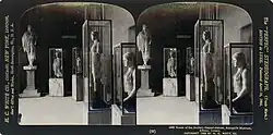 Photographie ancienne (1896). Frise de la face est du Parthénon, figurant Aphrodite, Apollon et Poséidon. |