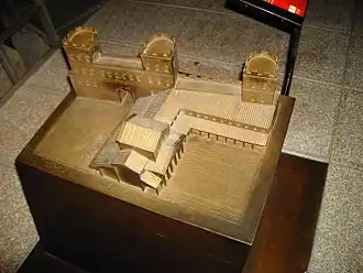 Au XIIIe siècle en revanche, un premier bâtiment se construit « hors les murs », au nord de la muraille romaine et à cheval sur celle-ci, en même temps que l'église Saint-Hugues est restaurée et le clocher porche de la cathédrale bâti, en utilisant de la brique dans les trois cas ; puis un deuxième le prolonge, celui dont la façade restaurée sur deux niveaux, est visible dans l'actuel musée[10]. Les agrandissements successifs sur la place, dont « le vray portraict de la ville de Grenoble » gravé par Pierre Prévost vers 1575 et une gravure du début du XVIIIe siècle conservée au cabinet des Estampes de la BNF donnent l'idée[11], ont tous disparu au début du XIXe siècle, au cours du réaménagement de la place sous le Consulat.