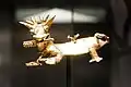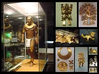 La collection est composée de 1600 pièces d’or précolombien qui datent d’entre 300 et 1500 apr. J.-C.[1]. La plupart des objets proviennent du sud-ouest du Costa Rica et témoignent de la maîtrise des tribus indiennes des Chibchas et des Diquis. On trouve parmi les pièces exposées des figurines animales, des amulettes, boucles d'oreilles, des statuettes érotiques, un guerrier grandeur nature paré d'ornements en or (El Guerrero) et une réplique d'une tombe précolombienne contenant 88 objets en or, découverte dans les années 1950 dans une bananeraie du Sud-Est[2] (site de Finca 4).