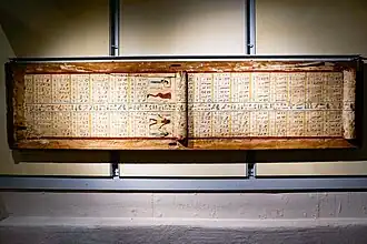 Le corpus égyptologique conservé par le musée comprend une fresque murale mise au jour dans le mastaba du vizir Seshemnefer III (la tombe G 5170), magistrat de l'Ancien Empire sous la Ve dynastie — période comprise entre 2 500 et 2 347 av. J.-C.[95],[96],[97],[98],[99]. La chambre funéraire de Seschemnofer III fut donnée en 1911 à l'université de Tübingen par Wilhelm Sieglin (de), professeur de géographie antique, qui la fit déterrer en Égypte dans le cadre d'une expédition de recherche dirigée par l'archéologue Theodor Schreiber (de)[100]. Le vestige, mis en évidence dans la chambre des offrandes par l'égyptologue Hermann Junker, et dont les deux pans de mur sont orientés selon les axes nord et ouest, mesure 2,45 × 1,57 m pour une épaisseur de 3,65 cm[95],[96],[98],[99].