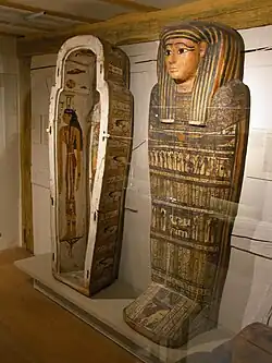 La collection égyptologique comprend principalement des pièces de vaissellerie (certaines en céramique d'autres en pierre) et des objets votifs en bronze[93]. Les plus anciennes pièces sont datées de 5 500 av. J.-C. et les plus récentes du VIIe siècle apr. J.-C.[93] Une partie du mobilier de la collection est le résultat des travaux de fouilles menés dans les années 1910 et 1920 sur la sépulture G 5170 à Gizeh[93],[94].