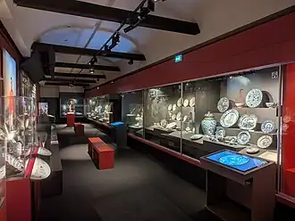 Les Portugais sont les premiers Occidentaux à découvrir le Japon en 1543. Tolérés dans un premier temps, ils s'y installent et exportent vers l'Europe des porcelaines et des laques Nanban, dont le musée conserve de superbes pièces. Pendant la période Momoyama, marquée par les guerres entre les clans japonais, les Portugais s'immiscent peu à peu dans les affaires politiques de l'archipel ; cette période trouble est évoquée dans le musée par une armure de samouraï et un sabre wakizashi. A partir de 1650, la politique du Sakoku interdit toute présence étrangère au Japon. Seul un vaisseau hollandais est autorisé à se rendre, une fois par an, sur l'îlot artificiel de Deshima, d'où il exporte des porcelaines et des laques japonais vers l'Europe[4]. Dans cet espace, le musée évoque aussi le rôle de la VOC, Compagnie néerlandaise des Indes Orientales, en Asie de l'Est et du Sud-Est.