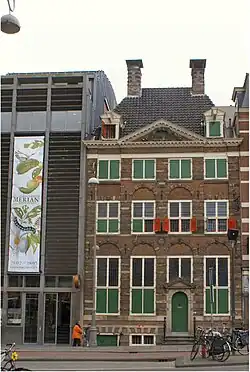 - ↑ Adresse actuelle : Jodenbreestraat 4 1011 NK Amsterdam