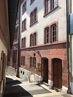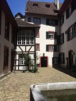 Au cœur de la vieille ville de Bâle, à mi-chemin entre la Marktplatz (place du marché) et la Peterskirche (église Saint-Pierre), est située la maison « Zum Vorderen Sessel ». Mentionnée déjà en 1316 comme lieu des bains publics « Unter Krämern », la maison a été le lieu d'une histoire très variée. À partir de 1480, l'imprimeur Johannes Amerbach, ancêtre d'une célèbre famille de savants, y a habité. En 1507, la maison a été reprise par Johannes Frobenius, le plus célèbre imprimeur de cette époque. Erasmus von Rotterdam a été l'hôte de Froben à la maison « Zum Vorderen Sessel » de 1514 à 1516 où il a trouvé un lieu accueillant pour travailler et vivre.
