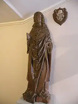 Statue en bois de Louis XII en costume de sacre du XVIe siècle.