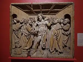Comme dans cette œuvre, le Doute de saint Thomas – autre fragment de retable, inspiré d'une gravure de Dürer – représente le donateur à une échelle réduite, à l'écart du Christ et des apôtres.
