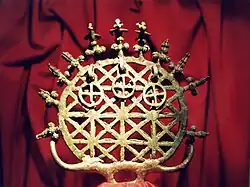 La deuxième partie de la salle ouest contient des artefacts provenant des tombes dites princières d'Alacahöyük, datant de la période Hattienne, fin du IIIe millénaire. Les plus connus sont appelés « étendards » : ce sont des disques de bronze ajouré avec des motifs géométriques, des représentations du Soleil et des animaux, certains avec des incrustations d'or et d'argent et un dispositif de fixation. Ils sont interprétés comme des ornements du char funèbre qui menait les princes à leur dernière demeure[5].