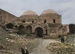 Selon des documents officiels, le caravansérail Kurşunlu Han a été bâti par Rum Mehmed Pacha, successeur de Mahmud en tant que grand vizir du sultan Mehmed II. En l'absence d'inscription sur le bâtiment, il n'est pas possible de donner de datation exacte. À partir de monnaies de l'époque de Murad II (règne : 1421-1451) retrouvées en 1946 lors de la restauration, on peut conclure que l'édifice existait déjà au XVe siècle. Le Han est du type des caravansérails ottomans, avec un patio entouré d'un portique et de 28 chambres au rez-de-chaussée et 30 au premier étage. Une écurie était aménagée dans les parties ouest et sud. Les côtés nord et est étaient occupés par 24 magasins, dont quatre dans la porte d'entrée est. Pour finir, après un incendie en 1881, les deux bâtiments sont abandonnés et tombent en ruine[2].