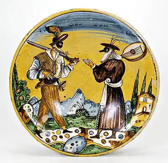Des représentations délicates de la figure humaine apparaissent sur les faïences, tout en restant limitées aux personnages individuels types, tels que pages, dames, musiciens ou figures allégoriques jusqu'au thème, commun à diverses manufactures de la région centrale de l'Italie, des soi-disant « belles femmes » ou « belles », peintes de couleurs vives, au décolleté généreux, aux robes somptueuses, aux coiffes, et aux nombreux noms : la belle Julia, la belle Eugenia, la belle Laura, la belle Bernardina, la belle Maria, la belle Diana, la belle Laura, comme le remarquera Giulio Castellani dans son poème du XVIe siècle dédié à la « Belle de Faenza ».