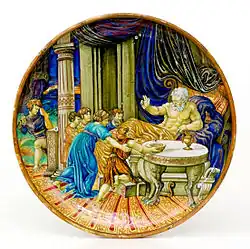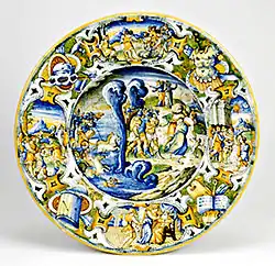 - Plat d'apparat avec représentation du roi Judas Maccabée à cheval, Deruta, première moitié du XVIe siècle[28].
