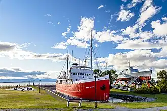Le brise-glace NGCC Ernest Lapointe de type vapeur a servi à ouvrir les voies maritimes dans le Saint-Laurent. Il s’agit du premier brise-glace construit par le chantier maritime Davie Shipbuilding and Repairing Co. à Lauzon. Le navire est lancé le 5 février 1941, soit un an plus tard que prévu en raison de la guerre[24]. En effet, le navire qui transportait les moteurs fut coulé lors de son voyage vers le Canada[25]. Le brise-glace est commandé par le capitaine Robert Marchand jusqu’en 1967[26].