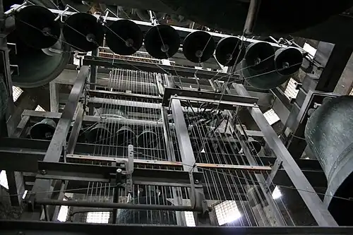 Saint-Amand-les-Eaux est la première ville de France à s'être préoccupée de former des carillonneurs en créant à l'École de Musique la première classe française de carillon. Situé au sommet de la tour abbatiale, il est l'un des plus spectaculaires de la région. L'architecture de ce monument a même été conçue en fonction de ses cloches : du rez-de-chaussée au sommet, des vides circulaires, une trémie et un treuil permettent de les monter. L'horloge du XVIIe siècle avec son tambour de ritournelles constitue l'ultime étape avant d'accéder à la cabine du carillonneur et aux 48 cloches. Rénové et agrandi en 1949-1950 par Paccard, complété par la cloche Sidonie fondue par Cornille Havard en 1984, et complètement restauré et réinstallé en 1986-1987 par Eijsbouts, le carillon offre désormais une excellente musicalité. Il est encore aujourd'hui l'un des rares à être animés quotidiennement de 12h à 12 h 30 par les carillonneurs de la ville.