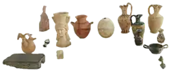 Deux dépôts de fondation contenant surtout des céramiques y furent découverts, l'un situé à la base d'un mur et l'autre dénommée « cachette » se trouvait sous le sol d'une petite pièce voûtée[4].