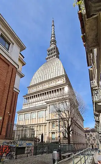 Le musée national du cinéma, fondé en 1953[2], est accueilli dans un décor architectural grandiose, la Mole Antonelliana. Le noyau de la collection - légué à la commune en 1991 - est dû au travail de l'historienne et collectionneuse Maria Adriana Prolo. Inauguré en 2000, après la rénovation de l'architecte Confino, son espace muséographique se développe sur une surface de 3 200 m2 distribuée sur cinq étages. Il présente des appareils optiques pré-cinématographiques (lanterne magique), accessoires de cinéma anciens et modernes et des pièces provenant des premiers studios de cinéma. Dans la salle principale, construite dans la salle dite du tempio della Mole, une série de niches est dédiée aux divers genres de film. Le musée conserve d'importantes collections en constante augmentation : il regroupe (en 2006), 20 000 appareils, peintures et gravures, en plus de 80 000 documents photographiques, 12 000 films, 26 000 volumes et 300 000 affiches venus du monde entier. Une salle proche, à l'intérieur du cinéma Massimo, est réservée exclusivement aux rétrospectives et autres activités du musée. Le musée accueille l'un des principaux festivals cinématographiques d'Italie : le Torino Film Festival.
