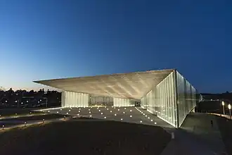 Le nouveau bâtiment logeant le musée est conçu par les architectes Dan Dorell, Lina Ghotmeh, et Tsuyoshi Tane[3] (DGT, Paris) . Il est inauguré le et ouvre officiellement ses portes au public le . Il fait 355 mètres en longueur et 71 mètres en largeur, pour une superficie de 34 000 m2. En plus des 6 000 m2 consacrés aux espaces d'exposition, le programme comprend un auditorium, un restaurant, un café, un centre éducatif constitué de dix salles de classe, une bibliothèque, un laboratoire de recherche, une réserve d'archives et des bureaux[4], faisant du musée un établissement culturel à vocation multiple.