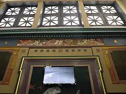 Sous la corniche de cette même pièce court une fresque exécutée par un préparateur au Muséum national d'histoire naturelle de Paris et qui présente une faune marine stylisée[2].