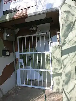 - Blockhaus d'entrée (local de garde) : le premier échelon de la défense intérieure est assuré par la porte d'entrée blindée. À 40 mètres environ de l'entrée de l'ouvrage, un blockhaus avec porte blindée, embrasure pour arme personnelle et trou à grenades constituait le deuxième échelon.