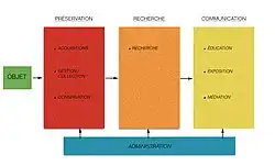 - ↑ André Desvallées et François Mairesse (sous la direction de), « Muséologie », Dictionnaire encyclopédique de muséologie, Armand Colin, 2011, p. 373.