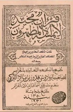 - 1 2 Le vieux Mus’haf algérien, Imprimerie Thaâlibia, Rodosi, édition 1931 : Internet Archive