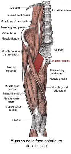 Le muscle pectiné (Musculus pectineus) est un muscle du membre inférieur situé dans la partie supérieure de la loge fémorale médiale.