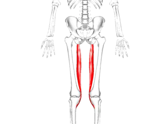 Il relie l'os coxal au tibia. Il est bi-articulaire : articulation coxale et articulation du genou.