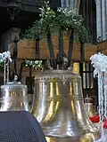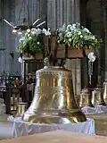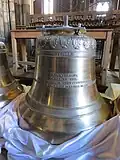 | Cécile (volée) | 3 046 kg | si♭ 2 | « EN L'HONNEUR DE SAINTE CECILE ET DE LA MUSIQUE / ET DONT LA GRACIEUSE STATUE ET LE BAS-RELIEF SCULPTES PAR CLODION / POUR LE JUBE DE LA FIN DU XVIIIEME SIECLE / ONT ETE REPLACES, DANS L'UNE DES CHAPELLES LATERALES NORD. » | Saint-Romain | 2015 | Fonderie Paccard | |||