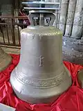 | Eudes | 178 kg | mi 4 | « FAMEUX ARCHEVÊQUE DE ROUEN, PRÉLAT DU PAPE, / AMI DE SAINT-LOUIS DONT LE NOM FUT DONNÉ AU MOYEN AGE / À L'UNE DES CLOCHES DE LA TOUR ST ROMAIN / "LA RIGAUD" / DISPARUE DEPUIS, EGALEMENT ENTERRÉ DANS LA CATHÉDRALE » | Saint-Romain | 2015 | Fonderie Paccard | |||