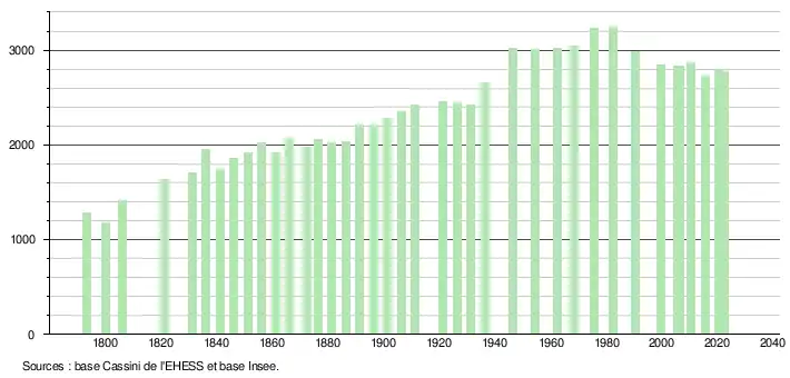 - ↑ Fiches Insee - Populations de référence de la commune pour les années 2006, 2007, 2008, 2009, 2010, 2011, 2012, 2013, 2014, 2015, 2016, 2017, 2018, 2019, 2020, 2021 et 2022.