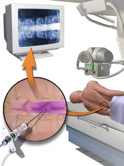 La myélographie est un type de radiographie utilisant un produit de contraste iodé dans le but de détecter des pathologies de la moelle épinière, en prenant compte de l'endroit de la blessure de la moelle épinière, kyste et tumeurs. La procédure consiste en l'injection de produit de contraste entre les vertèbres cervicales et les vertèbres lombaires à l'aide d'une aiguille pour ponction lombaire, suivie par différents clichés radiologiques. Cet examen est généralement complété par un scanner (CT).