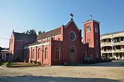 La cathédrale catholique Saint-Colomban est le siège du diocèse de Myitkyina, érigé en 1939.