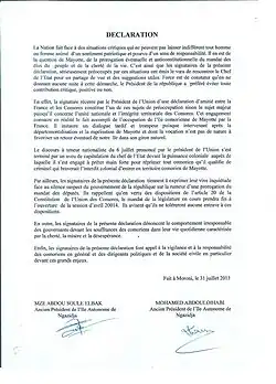 - ↑ Damien Gautreau, « Mayotte est-elle française ? », sur Club de Mediapart (consulté le )