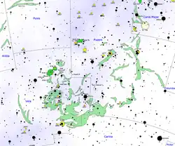 Son centre est situé à environ 450 parsecs du Système solaire, soit d'environ 1 470 années-lumière. La nébuleuse de Gum est une rémanence, probablement toujours en expansion, d'une ou plusieurs supernovas, survenues il y a quelques millions d'années.