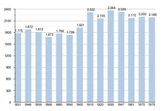 - Sources : INS, Rem. : 1831 jusqu'en 1970 = recensements, 1976 = nombre d'habitants au 31 décembre.