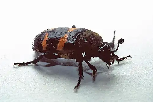 Coléoptère nécrophore (Nicrophorus tomentosus).