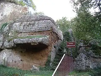 - Il s'agit d'une tombe monumentale située près de la Cava Buia. La tombe est actuellement enfouie sous une dense végétation. La tombe est décorée de frises et de lions sculptés. Elle comporte un double portique à colonnes sur un socle ainsi que des marches latérales.