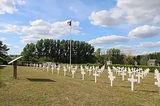 La commune fut choisie par le commandement allemand pour y implanter un camp de concentration regroupant les populations déplacées. Un lazaret était installé et hébergeait entre mille et deux mille personnes. Les corps de 685 personnes mortes dans ce lazaret reposent dans le cimetière militaire jouxtant le cimetière civil.