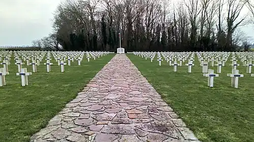 Le cimetière militaire est situé au nord du village, il a une surface de 1,75 ha. Il a été édifié en 1920 et contient 5 272 dépouilles dont 1 534 réparties dans six ossuaires[1].