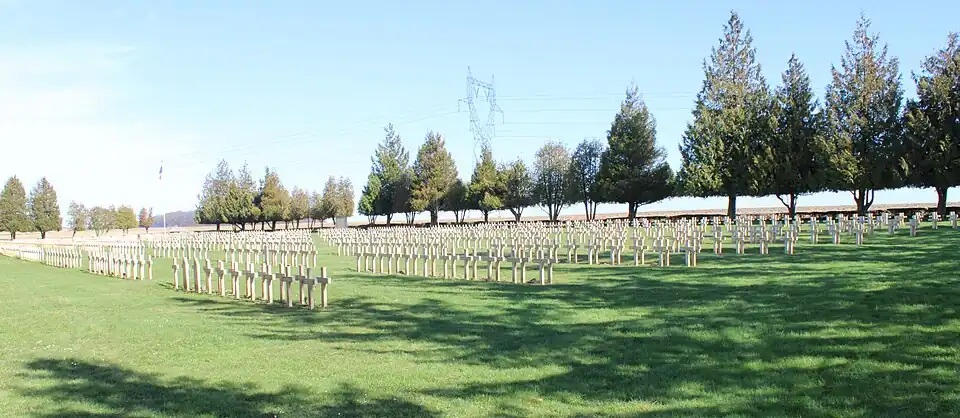 Sur une superficie d'1,37 ha sont inhumés les corps de 3 678 de soldats morts pendant la Grande Guerre dont 3 657 Français ; 2 120 en tombes individuelles et 1 588 en deux ossuaires[1].