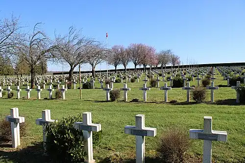 Elle rassemble sur une superficie de 2,8 ha, 8 566 dépouilles de soldats français dont 5 327 dans des tombes individuelles et 3 223[3], dans quatre ossuaires[4].