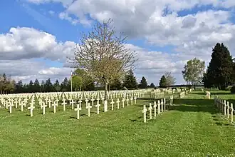 D'une superficie de 1,17 ha, la nécropole rassemble 1 610 tombes individuelles de soldats morts des suites de leurs blessures ou de maladie [2].