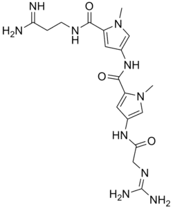 La nétropsine, également appelée congocidine et sinanomycine, est un polyamide pourvu d'une activité antibiotique et antivirale. Elle a été isolée pour la première fois à partir de l'actinomycète Streptomyces netropsis[3]. Il s'agit d'un antibiotique de la classe pyrrole-amidine, actif contre les bactéries aussi bien à Gram négatif qu'à Gram positif[4].