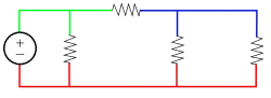 Dans les calculs de circuits électriques, notamment en théorie des réseaux, on définit le nœud comme la « convergence de trois conducteurs ou plus[3] » c'est-à-dire une connexion qui relie plus de deux dipôles[4].