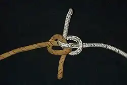 - Le nœud peut être réalisé avec deux cordes de diamètres différents[1].